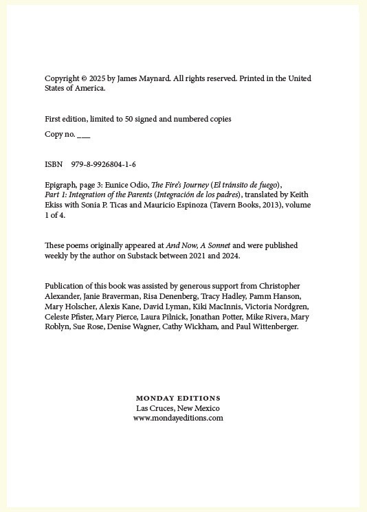 Every cent from paid subscriptions to Diary Poems goes to the publication of Monday Editions poetry chapbooks. If you’ve ever purchased a monthly or annual subscription or bought me a coffee, your generosity supported the publication of this book.